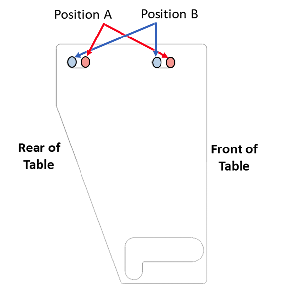 The three adjustable brake link plates are all initially installed in the factory at position A and are only moved toward position B if adjustments are required. Moving toward position B makes the caster pin reach full lock mode earlier, meaning less travel of the shaft linkage is required to engage the brakes.
