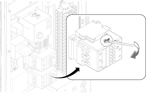 4. Remove the contactor by pulling the lever to right direction with flat screwdriver.