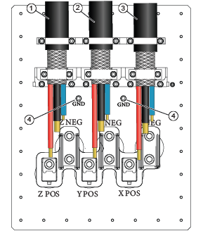1 Run M3319 = FILT Z, left side 2 Run M3318 = FILT Y, middle 3 Run M3317 = FILT X, right side - For the X, Y, and Z positive gradient cables:Note: If it is easier to remove the cables for the crimping process, dry fit and mark all cables, remove, crimp, and reinstall.