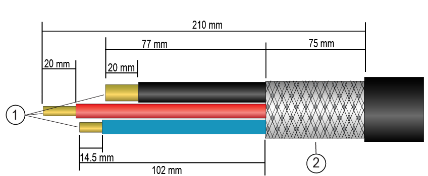 1 Wires 2 Braid - Remove the outer cable jacket up to a length of 210 mm from the cut end of the cable.