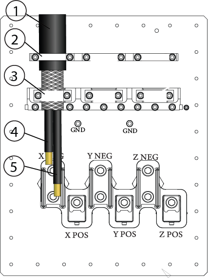 Connect each ground cable to the gradient filter. Do not over tighten GND studs.