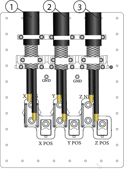 Attach precrimped lugs and connect the gradient cables to the equipment room side of the Gen2 Gradient Filter Assembly, 5808046-2.
