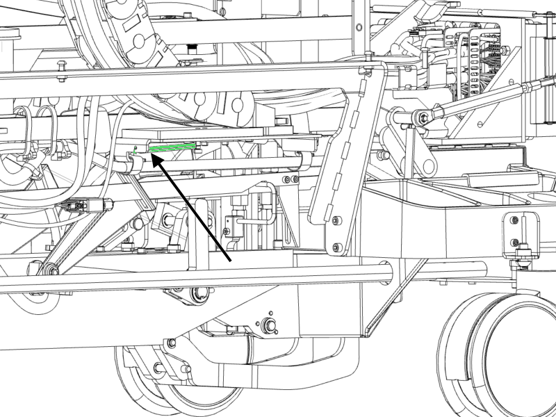 Figure 2. Hydraulic oil hose, fittings, clamp (bottom view)