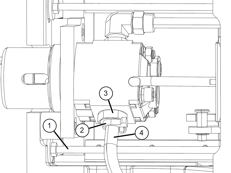 1 Down rod 2 Hose clamp 3 Fitting 4 Transparent low-pressure hose - To reassemble the table frame connector assembly, do the following: