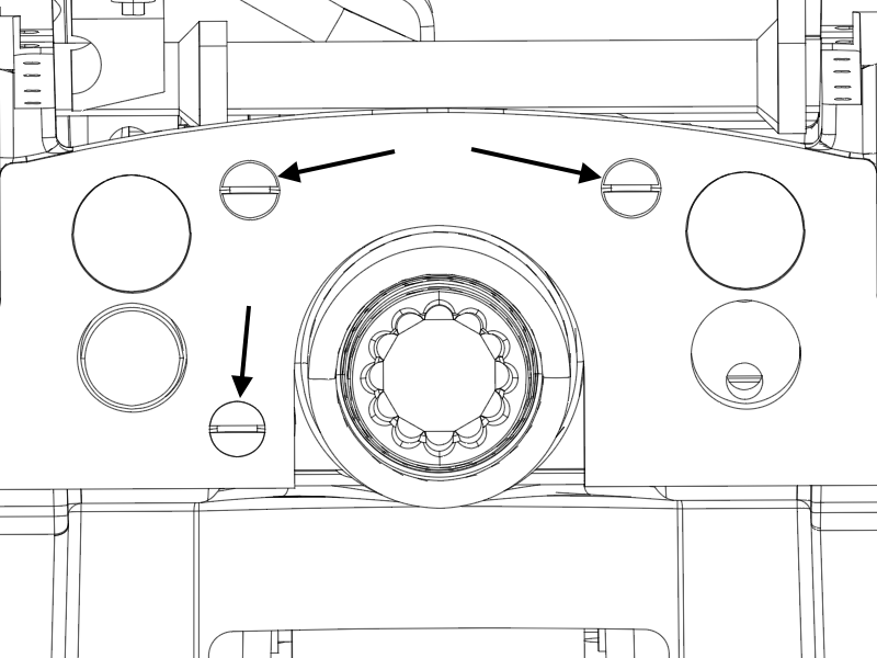 - Apply Loctite #242 to the three brass screws and reattach the pump brass plate to the front table base.