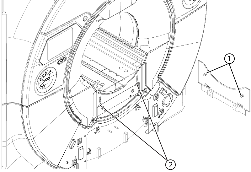 - Install the two screws securing the bridge cover to the front endbell.