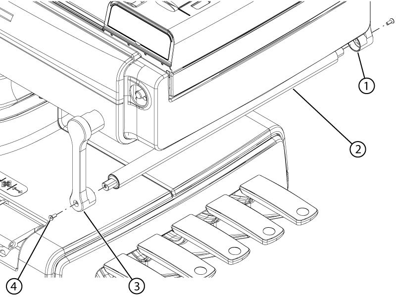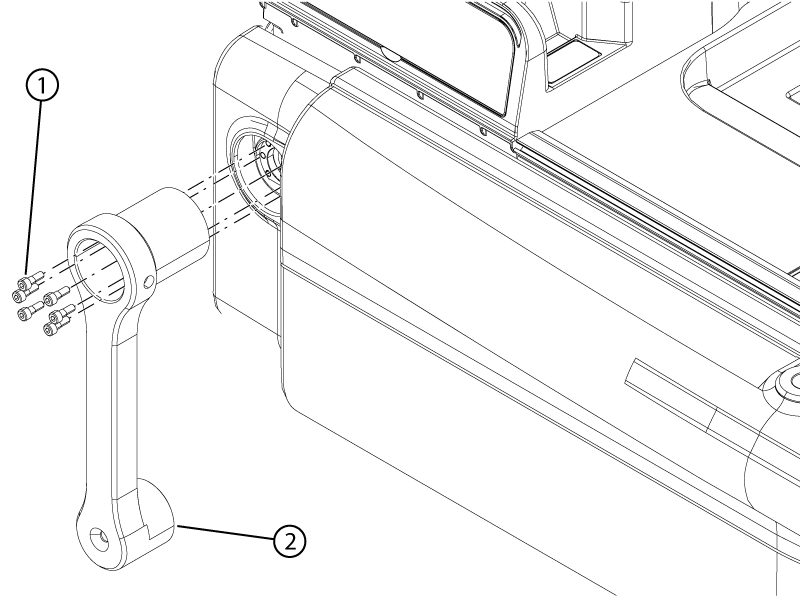 3. Install the six shoulder screws securing the handle arm to the handle hinge.