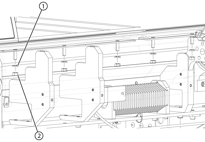 - Install the five nuts and five washers securing the bumper to the tabletop.