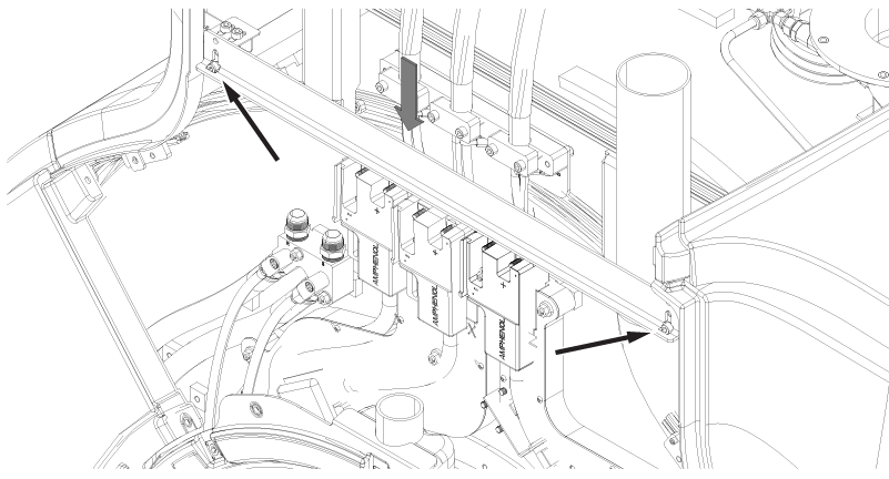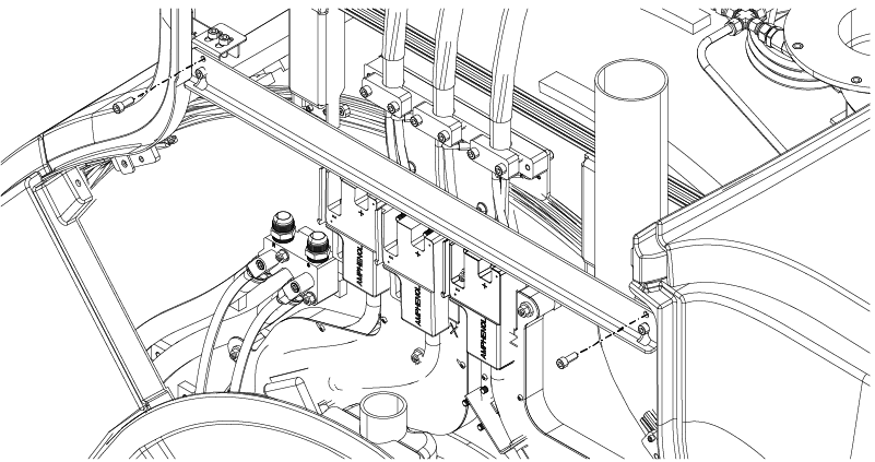 - Loosely install the bottom M10 x 25 Socket Head Cap Screw at each end of the magnet rear cable cover bracket onto the magnet enclosure bracket.