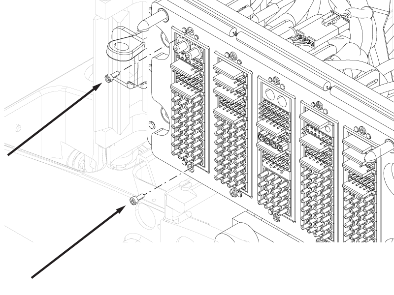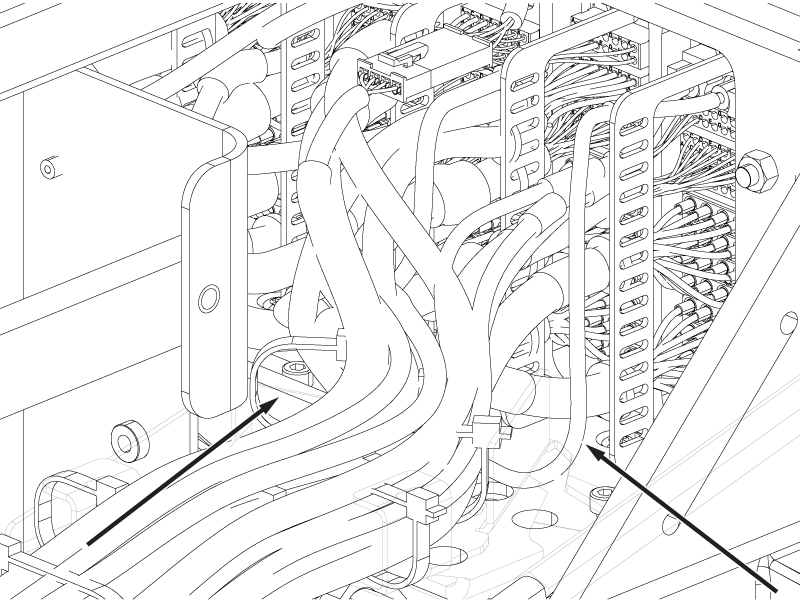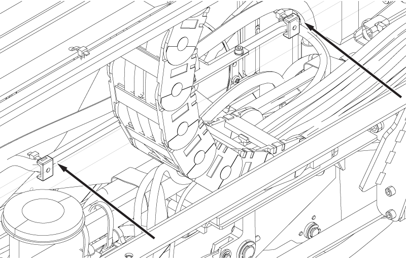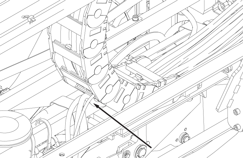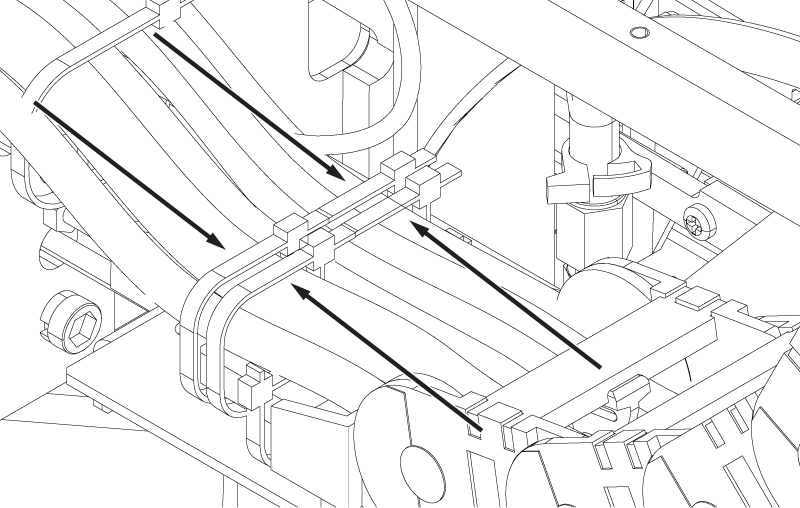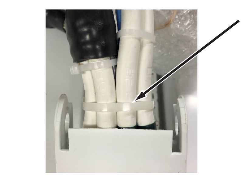 Remove the extra cable ties installed at the upper cable track end nearest to the P-port connectors for shipping. There should only be one cable tie around the entire cable bundle at the end of the cable track.