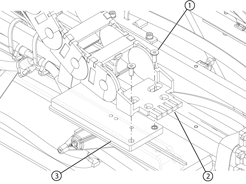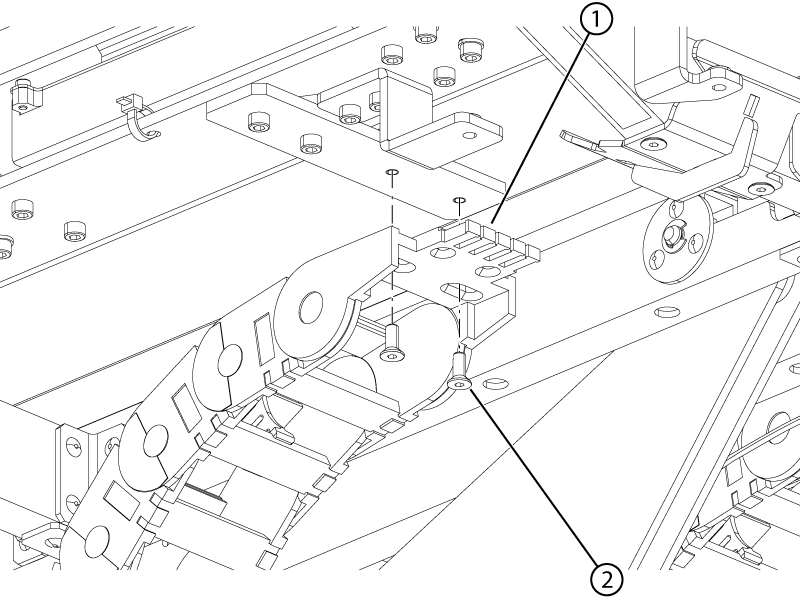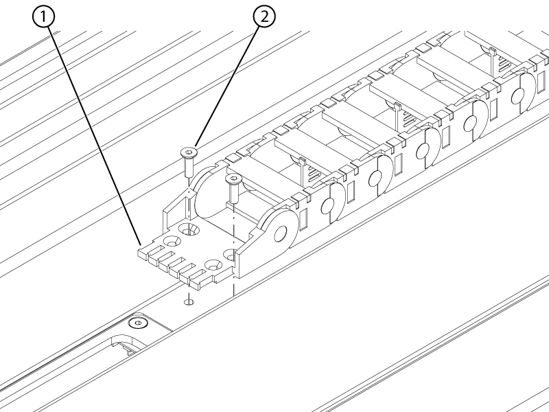 Install the two screws securing the right-hand lower cable track to the slider plate.