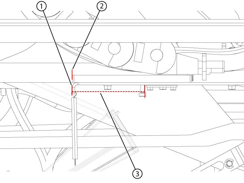 While holding the slack at the top exit of the track, adjust the position of the slide plate until the edge of the slide plate is aligned with the edge of the support bracket. Make sure the distance between the spring mounting locations shown is 90 ± 5 mm from outer end to outer end.