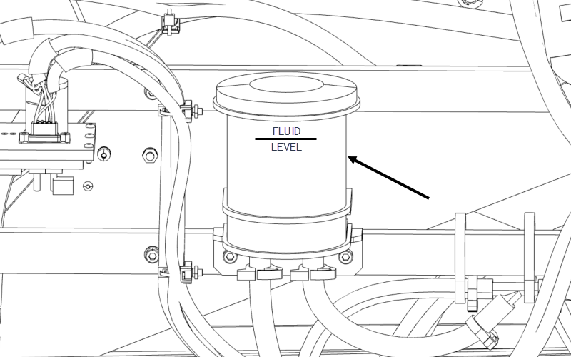 - If necessary, add hydraulic oil to the reservoir so it is 0.25 to 0.50 inches (6.5 to 12.5 mm) above the fluid level line (shown below) when the table is at its lowest position.