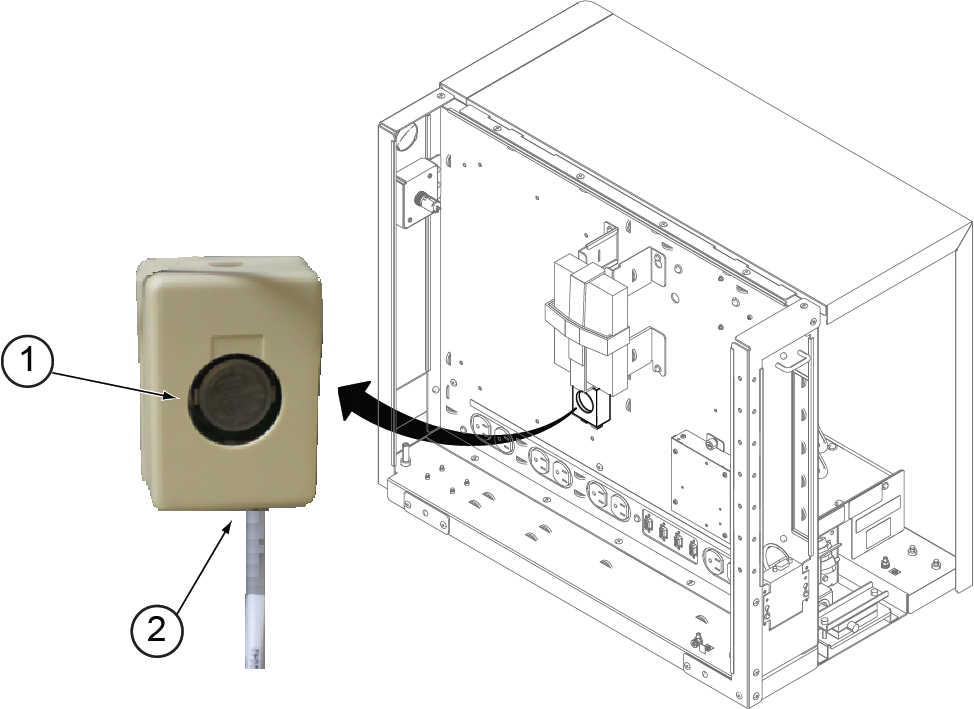 - Put the temperature and humidity sensor in position in the GOC and then press down firmly to fasten the Velcro.