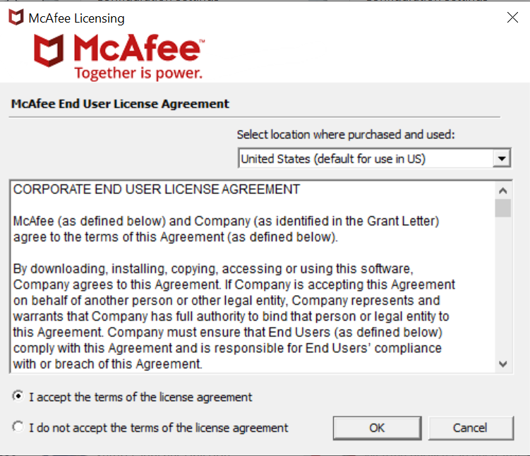 Follow these instructions to install McAfee ePolicy Orchestrator on a remote Windows machine. McAfee ePO should be installed by first downloading the free trial version from the McAfee website, and inserting the license key provided by GEHC during the setup process in order to upgrade to the full licensed version of the software.