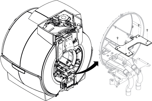 - Secure the RF body coil with bolts and washers by reversing the order.