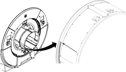 - On the front end of the body coil, transfer the front RF coil centering assembly from the body coil being replaced to the new RF body coil.
