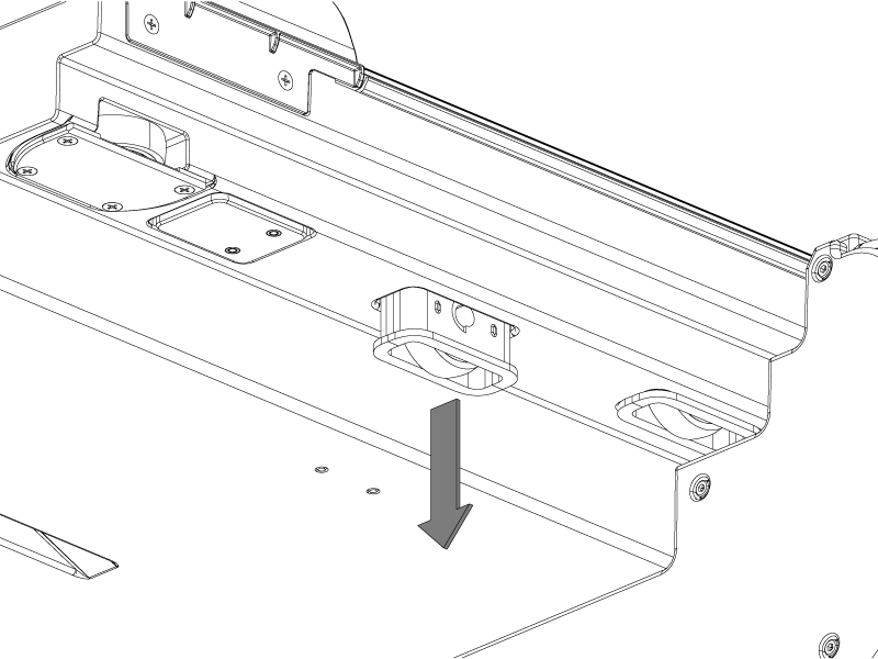 Press and hold the Dock pedal to override the primary latch and push the cradle approximately 80 mm off the tabletop surface.