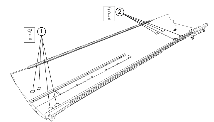 6. Remove the eight screw covers and eight screws (four on each end) securing the 1-piece bridge assembly.