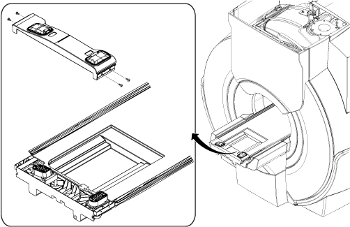 Removes the bore-end cover from the patient cradle.