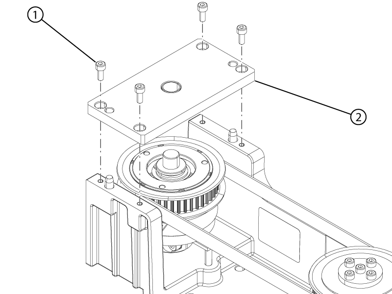 | The motor and EM clutch assembly is removed from the table. |