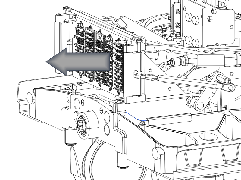 - Detach the spring under the right cable track, and detach the matching spring under the left side cable track.
