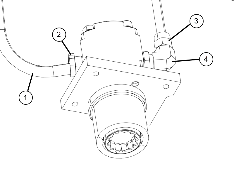 1 Transparent low-pressure hose 2 Hose clamp 3 11/16 inch manifold nut 4 Elbow hydraulic fitting