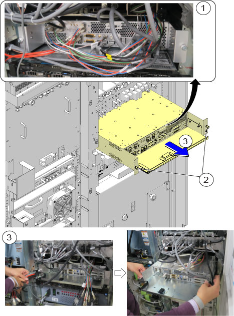 Removing the Integrated Control Engine (ICE) from the System Cabinet.