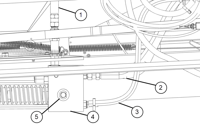 1 Top high-pressure hose 2 Side high-pressure table hose 3 Hydraulic oil (low pressure) hose 4 Reciprocating pump 5 Clip and shaft