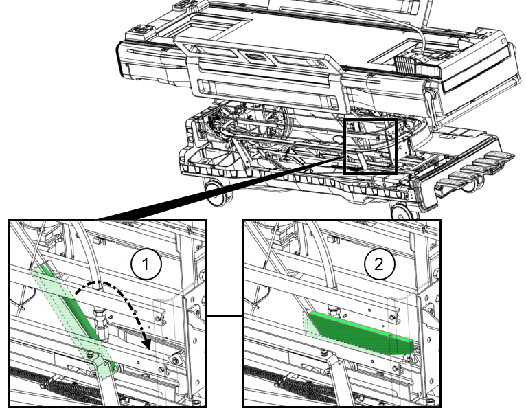 Personal injury possibilityWhen doing maintenance on the table in its up position, severe personal injury can occur if the table is accidentally lowered during maintenance.Make sure the lock safety bar is safely in place.Figure 1. Table lock safety bar