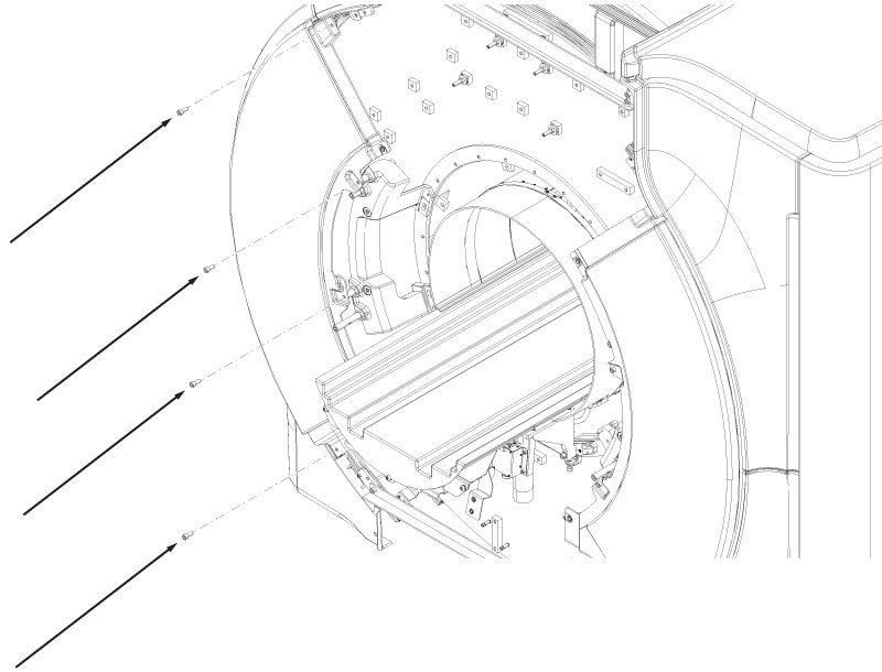 - Remove four screws securing the right-hand rear cover to the magnet.