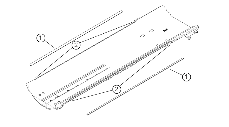 SIGNA™ Hero 3.0T Service Methods 5852800-8EN Revision 1.0 Object ID: 00000018WIA30E58070GYZTopic ID: id_2032569 Version: 1.2Date: Jun 14, 2021 3:26:02 PMReplacing the 1-piece bridge trim ProcedureRemove the bridge trim piece(s) that will be replaced. Note: the FRU part is one piece of trim. If both pieces of trim need to be replaced, order two pieces. Figure 1. Trim replacement1Trim pieces2Slot ends Insert the bridge trim into the slot on the side of the bridge. Align the trim end with the end of the slot.