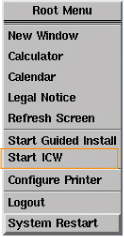 - Right-click on the Linux desktop to access the Root Menu and then select Start ICW.