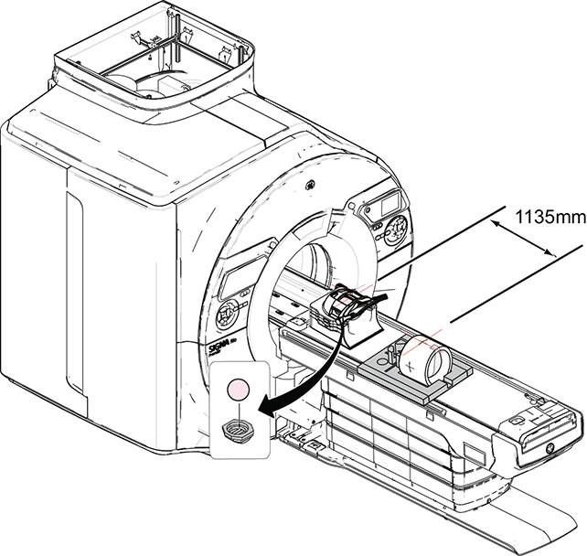 - Move the cradle into the bore until the display shows 1135 mm.