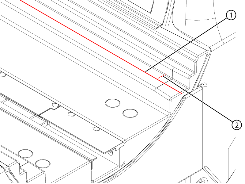 Note: Keep the lasers approximately parallel to the bridge so that the vertical distance measurements between the laser and the bridge horizontal surface at the front and rear of the bridge are within 1 mm of each other.