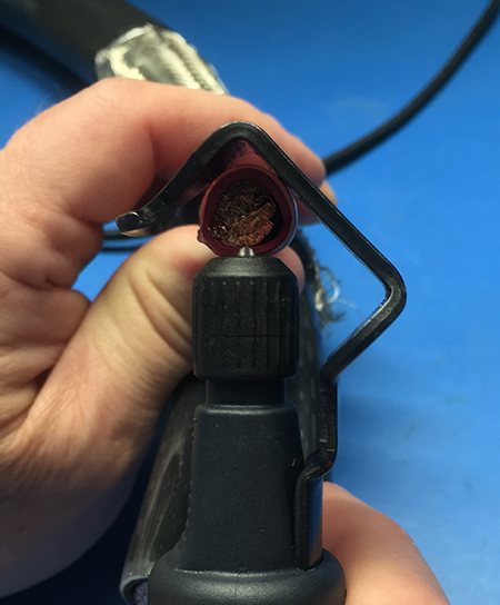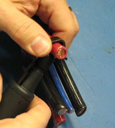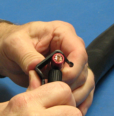 - Put the correct lug next to each cable and mark the bellmouth depth to identify how much insulation to remove on each cable. Note: Lug color/type will be different depending on the cable thickness and application.