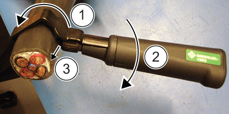 - Install the large hook onto the Greenlee 1903 wire stripper supplied in the GEHC Gradient Cable Tool Kit.
