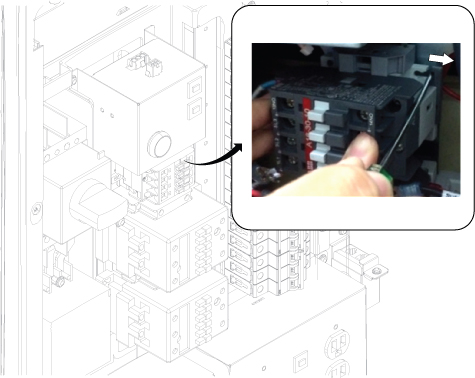 4. Remove the contactor by pushing the latch to the right direction with flat screwdriver.