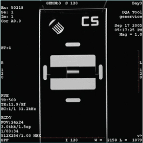- If the latest exam has its image(s) labeled Axial, the tool has made an early detection of a Z gradient polarity problem from the set of multi-slice images. Check to see if the central bar feature (in Figure 2) moves toward the resolution comb feature as the slice location moves from inferior to superior.