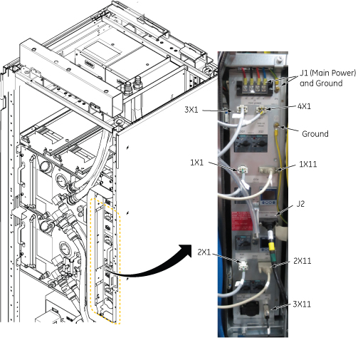 - Disconnect 1X11 cable (CCU control cable) and 2X11 cable (GCU control cable).