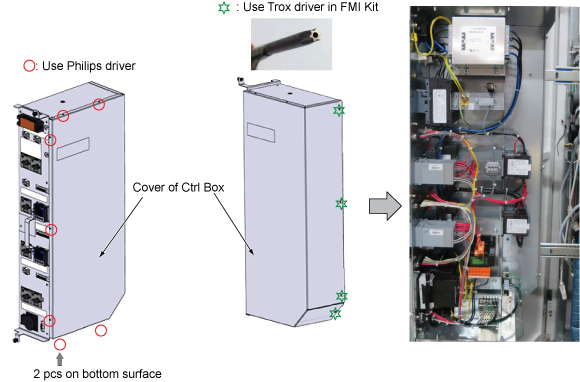 - Remove side cover of control box by loosening screws per the