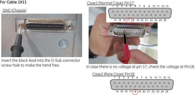 - Measure the DC voltage for Pin 17 on cable 1X11 and ground (See