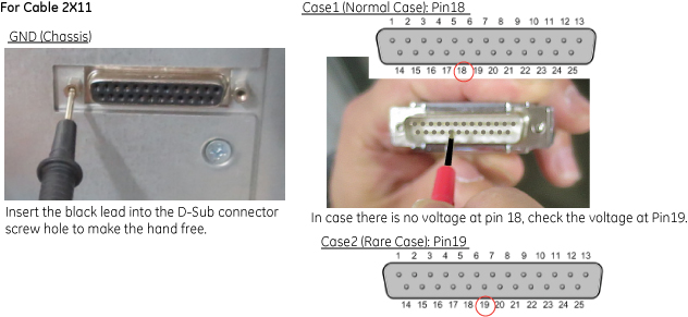 - Measure the DC voltage for Pin 18 on cable 2X11 and ground,