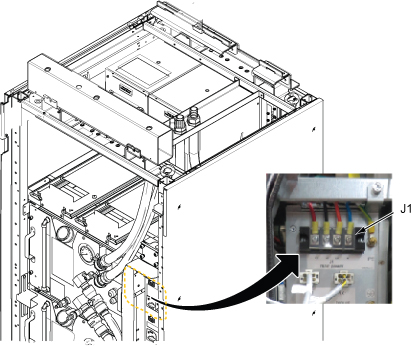 - Confirm that there is no voltage at the J1 terminal of control