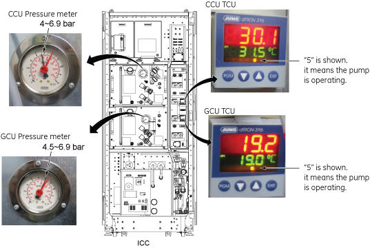pressure meter indicates proper value for CCU and GCU.